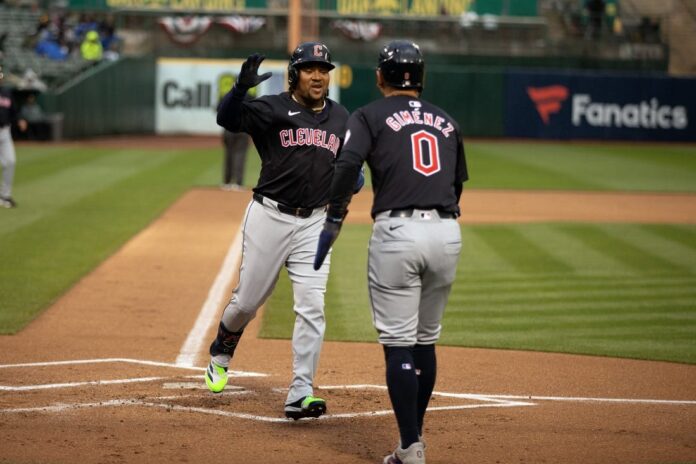 Andres Gimenez had three hits and scored two runs for the visiting Cleveland Guardians in a 6-4 win against the Oakland Athletics in the second game of their four-game series on Friday night.