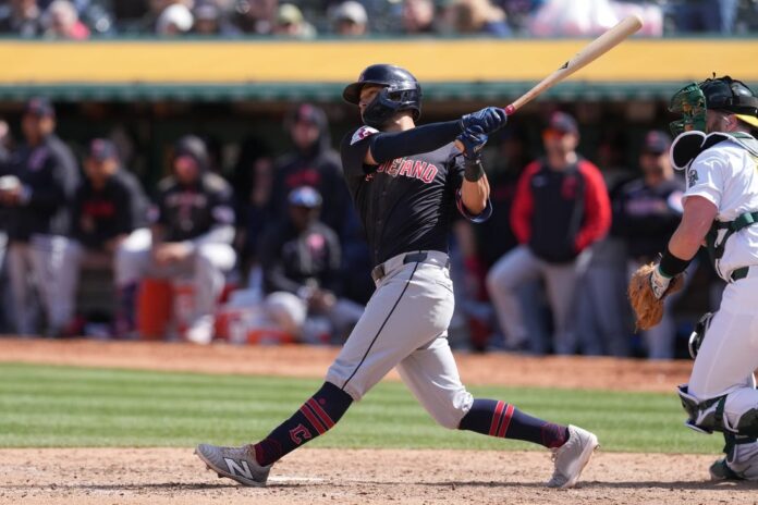 San Francisco Bay Area native Steven Kwan hit his first career home run in Oakland, Gabriel Arias collected two hits, two runs and two RBIs in his first start of the season and the Cleveland Guardians beat the Athletics 12-3 on Saturday afternoon.