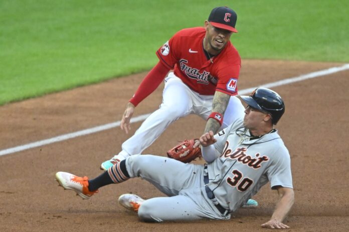 The Tigers held a 1-0 lead until the eighth courtesy of a run in the top of the fourth due to some luck and the elements. Riley Greene reached on an infield single that caromed off the plate out of the reach of Guardians starting pitcher Xzavion Curry.