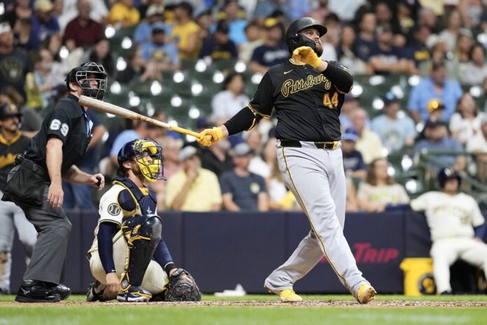 The Pirates hit five homers Tuesday night en route to a 12-2 win over the Brewers in the series opener. Joey Bart’s grand slam highlighted a six-run sixth inning, and Bryan Reynolds, Rowdy Tellez, Jack Suwinski and Joshua Palacios also went deep for Pittsburgh.