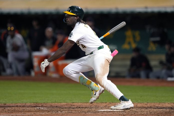 The second-year A’s outfielder credited a power beyond his own for the streak, which he extended Friday on a slow roller to shortstop to start the bottom of the first. He ended the night 3-for-5 with a walk.