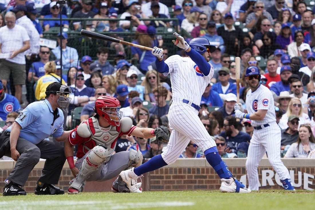 However, the Cubs pushed ahead in the bottom of the frame. Seiya Suzuki walked and eventually went to third on Tauchman’s two-out single. Wisdom then sent an Ashcraft pitch to the top of the left-field bleachers for his first homer since May 10.