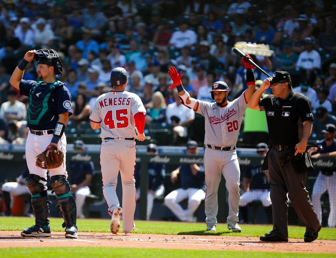 The Nationals strung together three consecutive singles to take the lead in the first inning. With one out, Joey Meneses lined a base hit to center field and advanced to second on Luke Voit’s grounder into left field. Former Mariner Nelson Cruz grounded the next pitch into center to bring home Meneses.