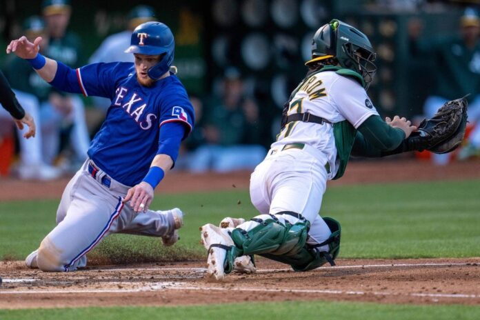 Texas never trailed, taking a 1-0 lead on Ezequiel Duran’s RBI single in the second inning before taking command with a three-run fourth against A’s starter JP Sears (2-9). Huff and Seager each had an RBI double in the uprising.