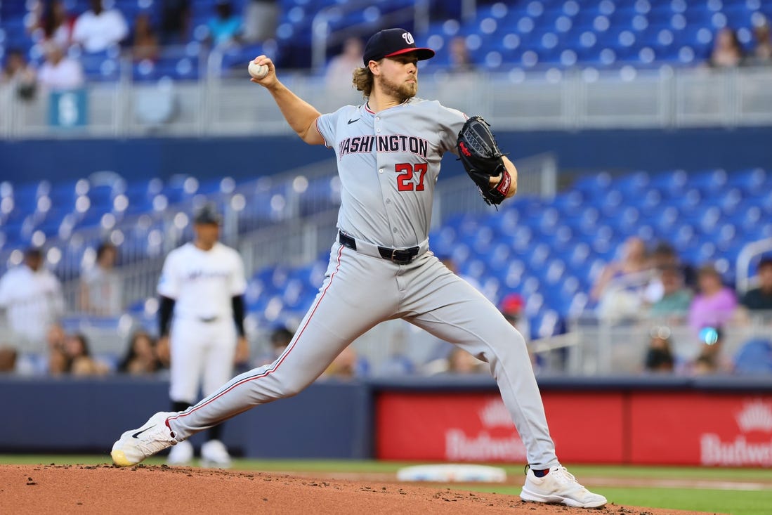 Jake Irvin responded from his worst outing of the season to pitch six solid innings and CJ Abrams smacked a two-run homer to help the Washington Nationals complete a four-game sweep of the host Miami Marlins, winning 7-2 on Monday night.