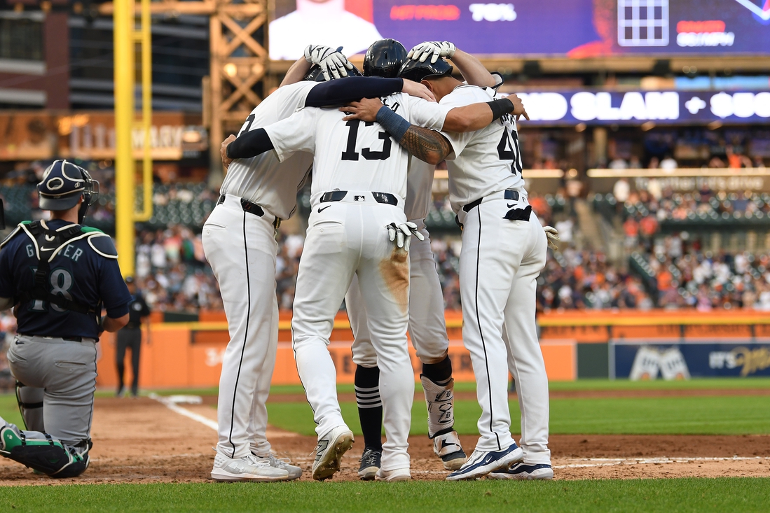Jake Rogers hit a grand slam and drove in seven runs, Kerry Carpenter homered twice in his return from the injured list and the Detroit Tigers clobbered the visiting Seattle Mariners 15-1 on Tuesday.