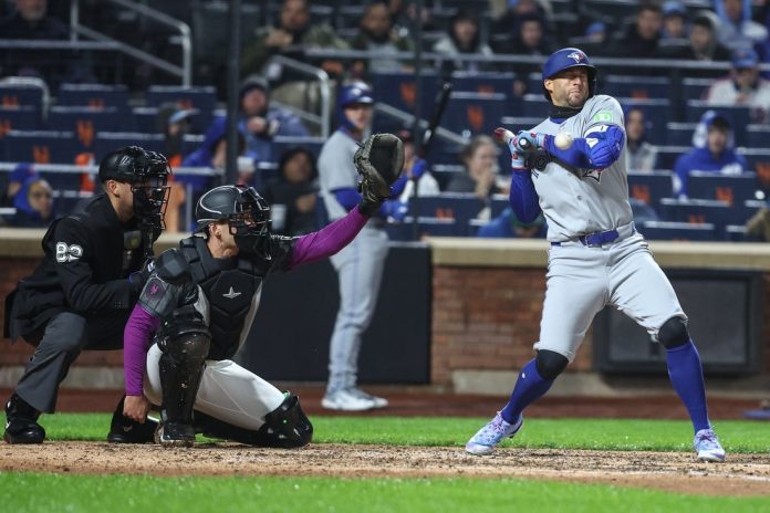 Toronto Blue Jays right fielder George Springer exited Saturday’s game against the host New York Mets with lower back spasms in the eighth inning after crashing face-first into the fence.