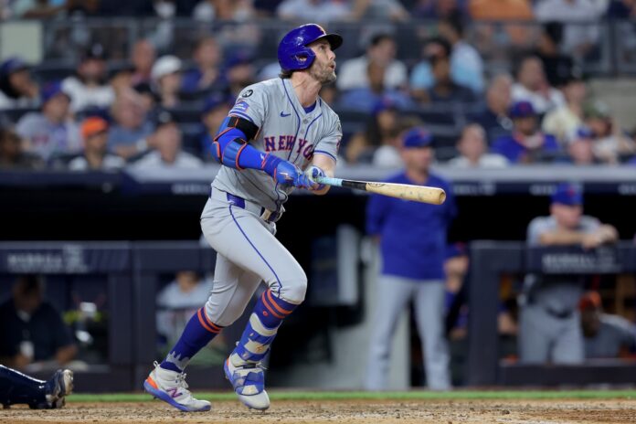 With McNeil on second and Luis Torrens at first, Tyrone Taylor hit a high fly ball to the gap in left-center field in front of the Mets’ bullpen. Alex Verdugo was unable to make the catch, but McNeil went back and tagged up before Torrens barely avoided passing him. That left the bases loaded.