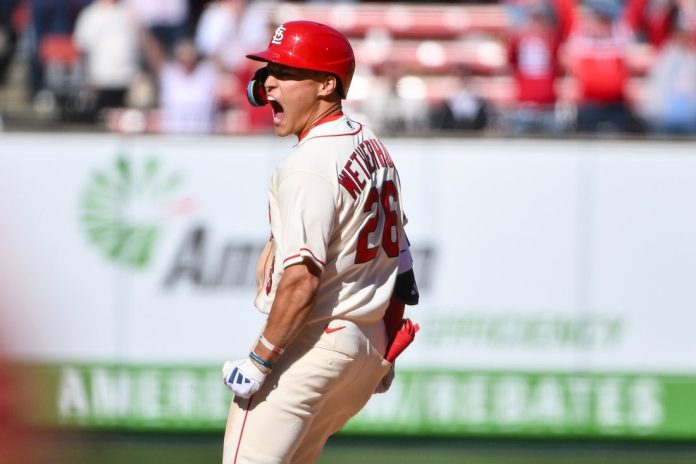 Jordan Walker started off the inning with a walk on four straight pitches to put runners on first and second.