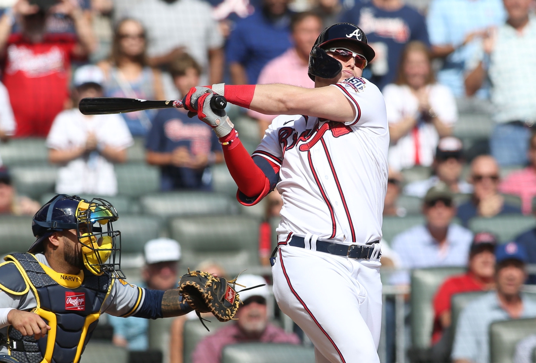 Pederson’s pinch-hit homer was his second of the series. He also launched a solo shot off Adrian Houser (1-1) in Atlanta’s 2-1 series-opening loss on Friday in Milwaukee.