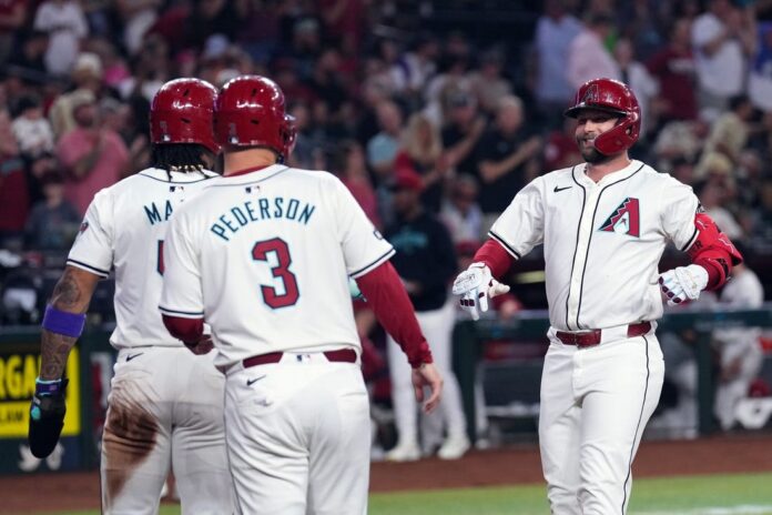 Luis Garcia entered and walked Corbin Carroll and Marte to load the bases. Pederson then emptied them by jumping on a first-pitch sweeper and hitting it 430 feet and over the pool in right-center. It was Pederson’s eighth homer of the campaign.