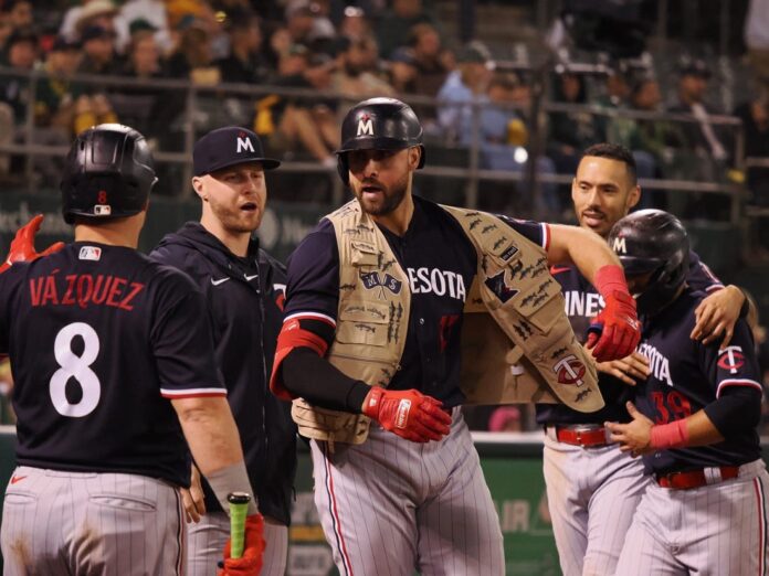 Minnesota scored twice in the first off A’s starter Ken Waldichuk on a Byron Buxton sacrifice fly and Kyle Farmer RBI triple, then again in the fourth to tie the game at 3-3 on an RBI double by Edouard Julien.