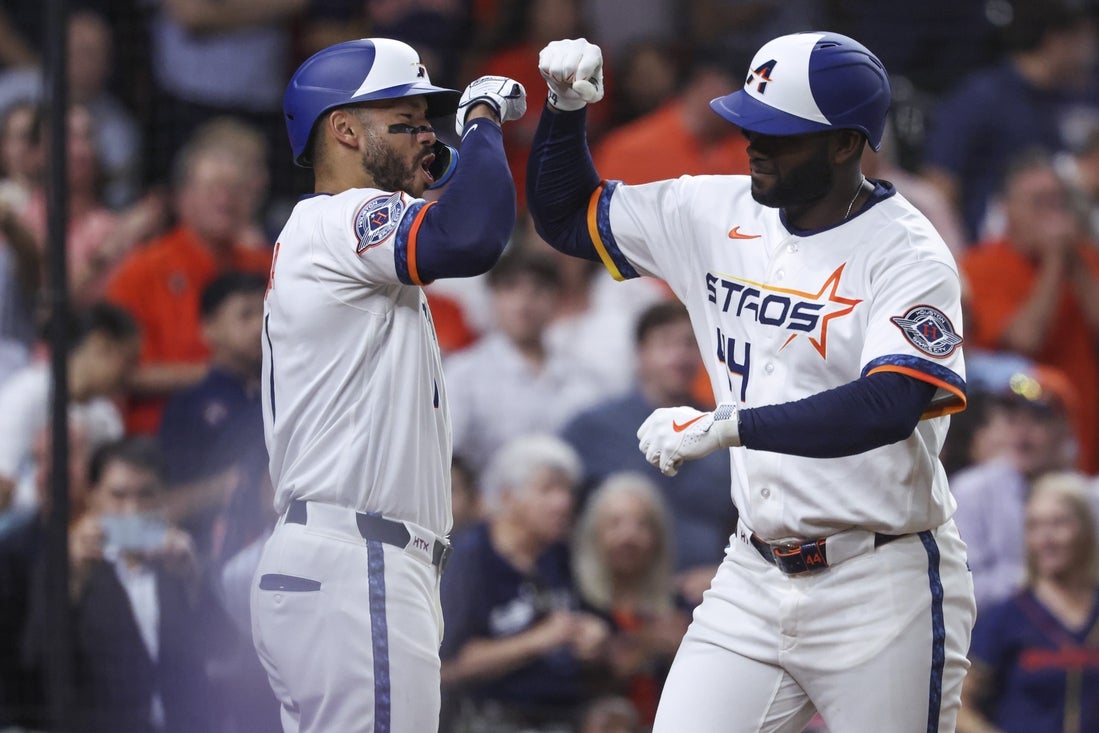 Two innings later, Altuve singled and scored again, this time coming home when Alvarez smacked a towering two-run homer down the right field line and into the second deck. Alvarez spotted the Astros a 3-0 lead with his second homer.