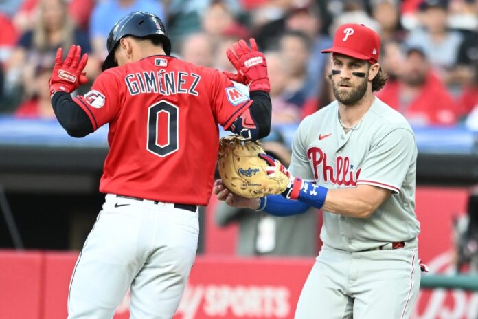 Amed Rosario and Josh Naylor delivered RBI singles in the sixth to put Cleveland ahead 6-2 before Philadelphia answered with three runs in the seventh. Realmuto hit a two-run blast off Sandlin and Stott followed with a homer to right field.