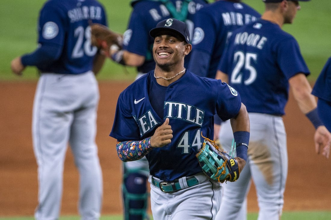 Rookie Julio Rodriguez belted a grand slam to highlight his five-RBI performance on Friday, fueling the visiting Seattle Mariners to their 12th straight victory with an 8-3 win over the Texas Rangers in Arlington, Texas.