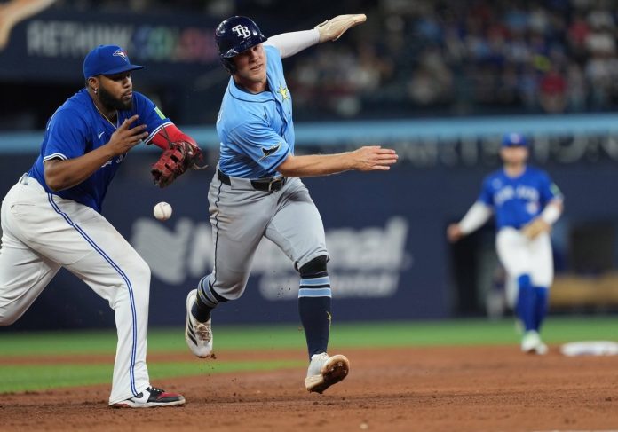 Tampa Bay’s Pete Fairbanks allowed RBI doubles to Bo Bichette and Vladimir Guerrero Jr. in the home ninth, then issued a two-out walk. Mason Montgomery came on and retired Varsho on a flyout to left to earn his first save.