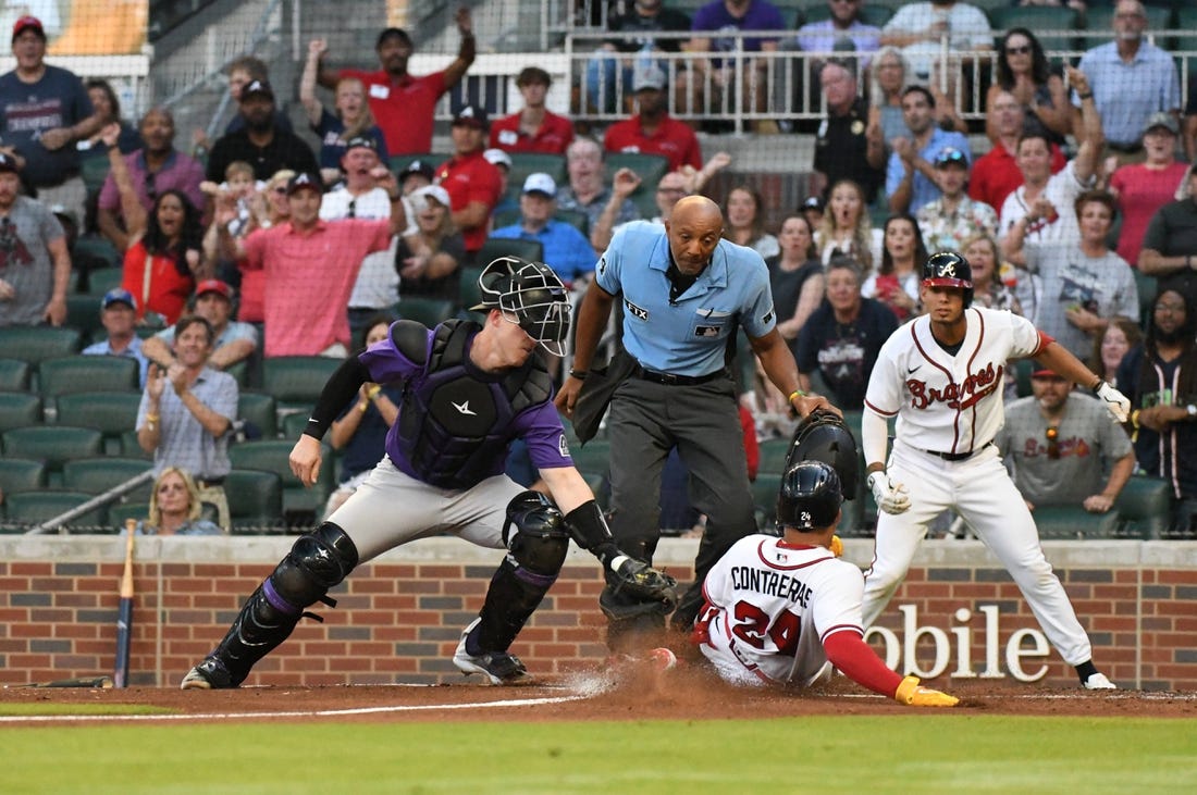 A.J. Minter worked a scoreless eighth inning, but closer Kenley Jansen ran into trouble for the second straight game. He allowed a two-out walk to Randal Grichuk and surrendered a two-run homer to rookie Michael Toglia, the first of his career. Toglia had picked up his first major league hit in the fourth inning with a single against Wright.