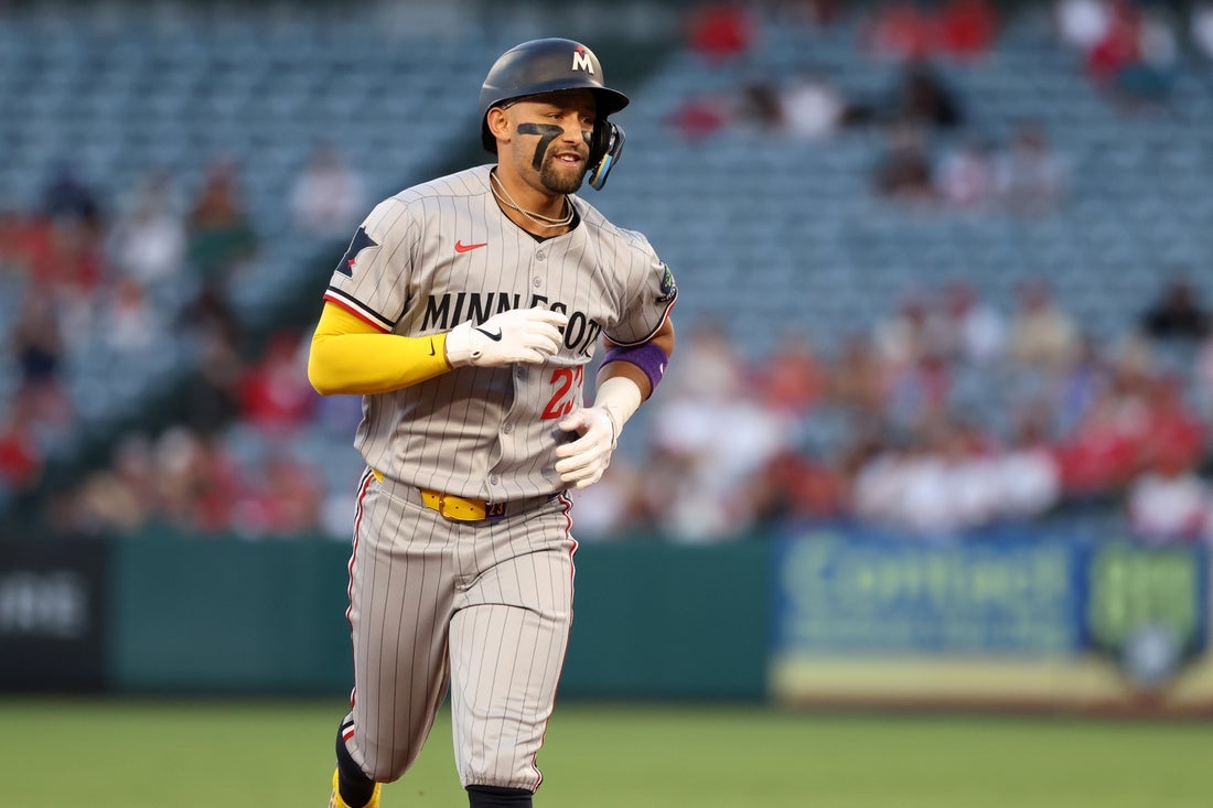 Royce Lewis homered twice to help the visiting Minnesota Twins earn a 12-3 win against the Los Angeles Angels in the opener of a three-game series on Monday evening in Anaheim, Calif.