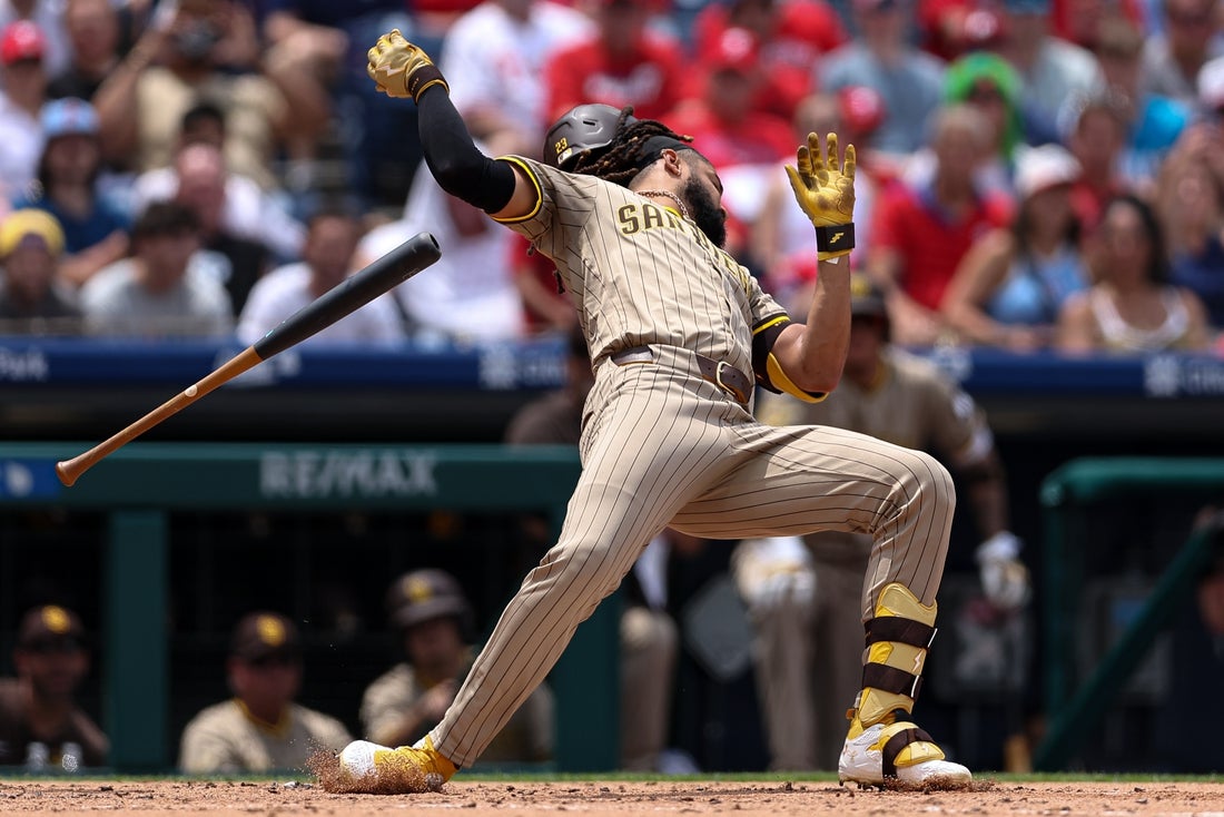 Philadelphia starter Mick Abel (2-2) allowed five runs, two hits and five walks in 1 2/3 innings. He walked four batters in the second inning, including consecutive bases-loaded walks to Fernando Tatis Jr. and Jackson Merrill to make it 2-0.
