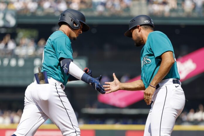 The Mariners sent 10 batters to the plate in the third as they broke a scoreless tie. Rojas led off with a homer just inside the right-field foul pole. J.P. Crawford doubled and, with one out, Eugenio Suarez and Cal Raleigh walked to load the bases. Hernandez lined a 1-1 sinker just over the left-field wall to make it 5-0. It was his third career grand slam.