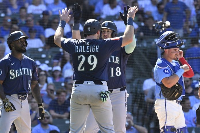 Seattle Mariners catcher Cal Raleigh surpassed legendary Johnny Bench for most homers before the All-Star break by a primary catcher when he hit two against the Chicago Cubs in Friday’s 9-4 victory.