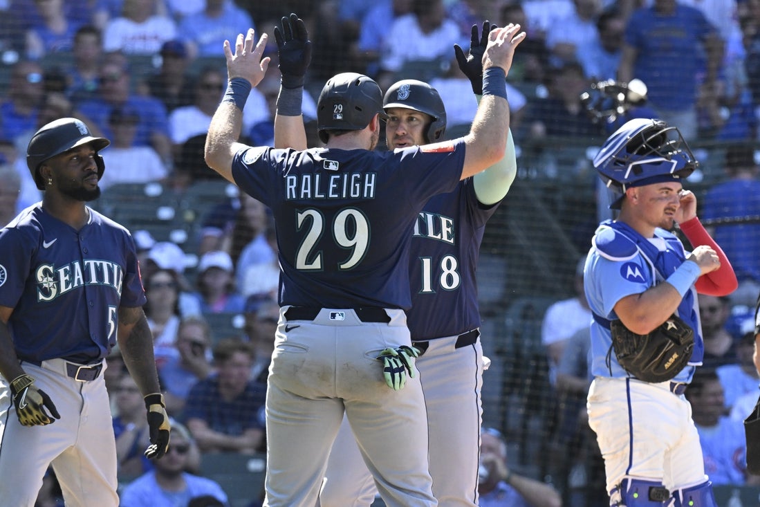 Raleigh, 28, has missed just one of Seattle’s 74 games this season. In addition to his major-league-leading homer total, Raleigh has 63 RBIs and a .273 average.