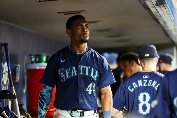 Seattle Mariners center fielder Julio Rodriguez left Saturday’s game against the visiting Toronto Blue Jays after the first inning without making a plate appearance because of tightness in his right quadriceps.