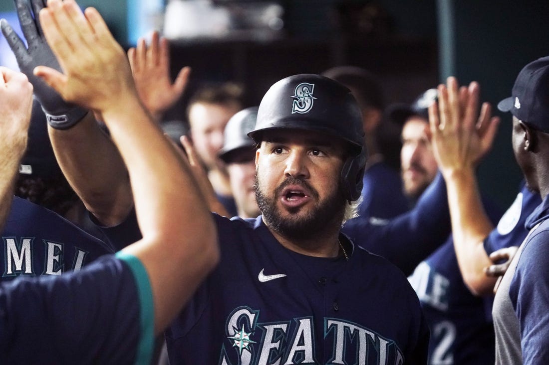 With Texas up 3-2 entering the ninth, J.P. Crawford drew a one-out walk from Joe Barlow (1-1), and Suarez followed with his 10th home run of the season, a shot to right. Suarez had a three-RBI night.