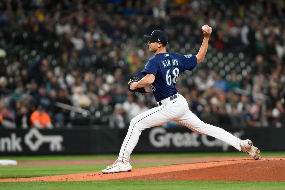 Justin Topa relieved Kirby in the seventh but didn’t record an out, hitting Yainer Diaz with a pitch and then giving up singles to Chas McCormick and Jeremy Pena. Matt Brash came on and allowed a sacrifice fly to Jon Singleton before catching Jose Altuve looking at a called third strike and getting Alex Bregman to ground into a forceout.