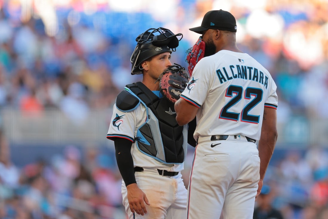 Sandy Alcantara, who won the NL’s Cy Young Award in 2022, allowed two hits, two runs and four walks in 4 2/3 innings, striking out seven.
