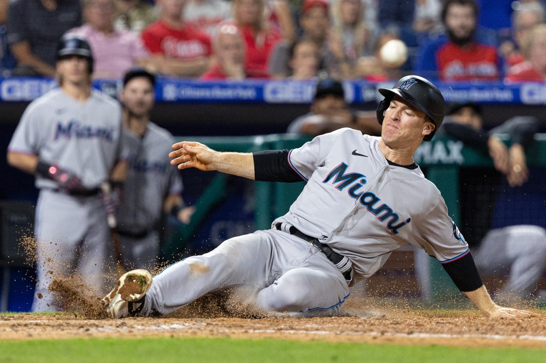Cooper opened the ninth with a double and his pinch-running replacement Bryan De La Cruz scored to tie the game when Wendle’s grounder eluded Hoskins just enough for a fielding error.