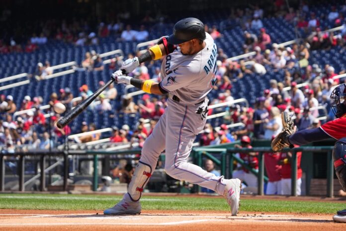 On Jazz Chisholm Jr.’s grounder, an errant throw to first by shortstop CJ Abrams allowed Miami to take the lead. Bryan De La Cruz then added a run-scoring single.