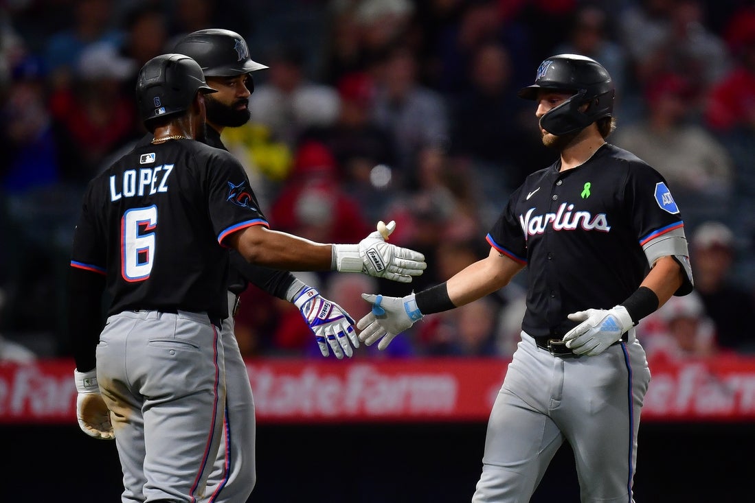 Miami scored twice in the fifth to go ahead 3-1. Kyle Stowers’ double-play grounder with the bases loaded brought in the first marker and Eric Wagaman followed with a run-scoring single. That also sent Los Angeles starter and loser Jose Soriano (3-5) to the showers.