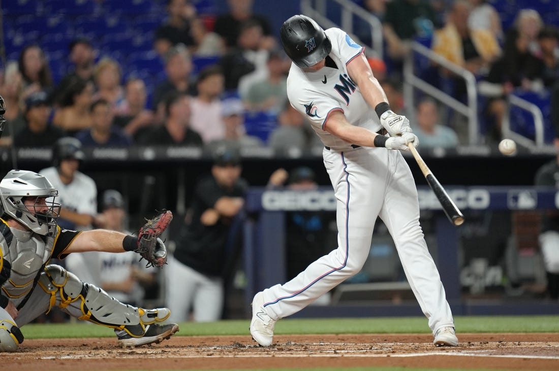 On Mlodzinski’s first pitch, Bryan De La Cruz grounded a two-run single. One out later, Cooper also attacked a first-pitch fastball from Mlodzinski, driving the ball 413 feet to right-center.