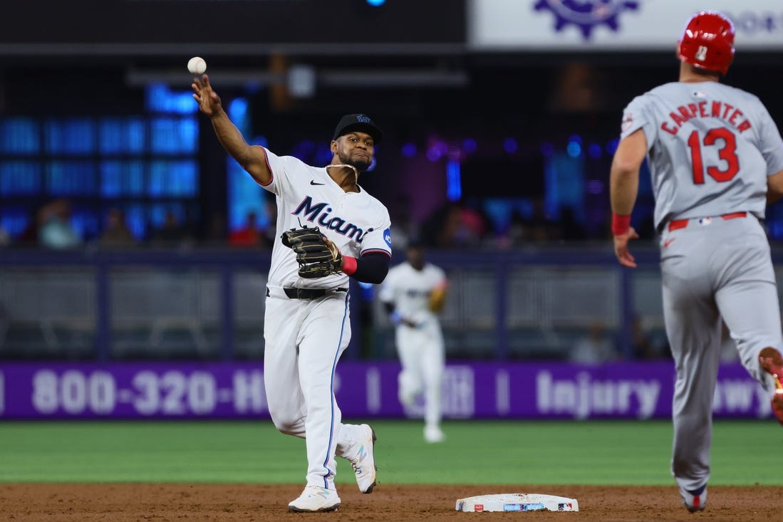 Marlins center Jazz Chisholm Jr. was scratched from the lineup due to a hamstring issue.