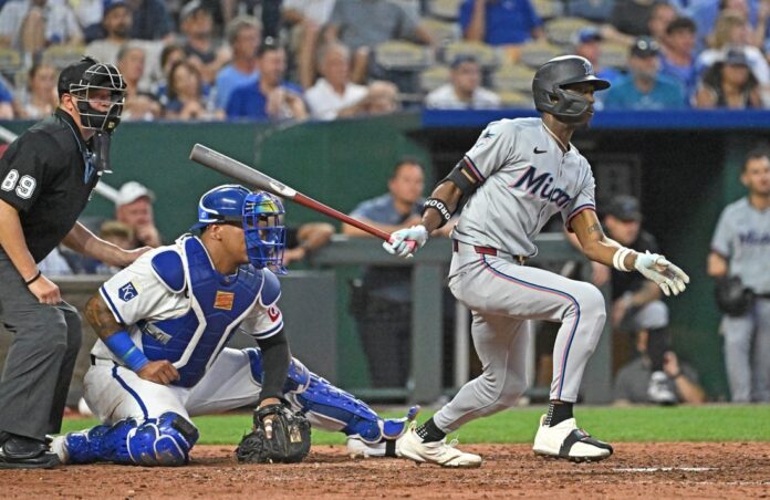 Maikel Garcia led off the first inning with a walk against Miami starter Yonny Chirinos. Garcia promptly stole second and third base before trotting home on Pasquantino’s single.