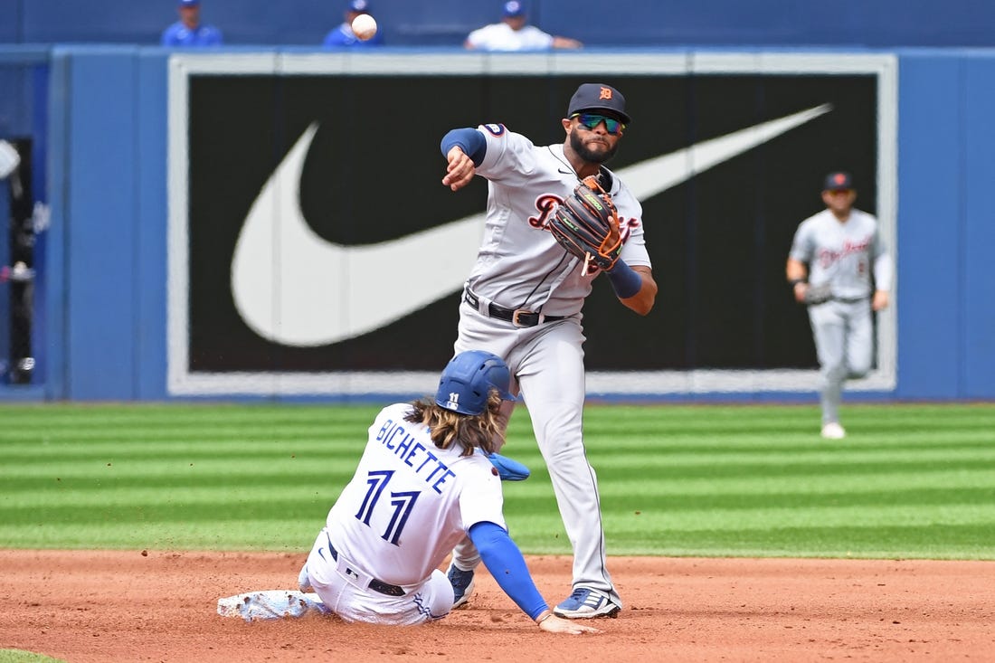 Javier Baez launched a solo homer for the Tigers, who committed four errors on Sunday.