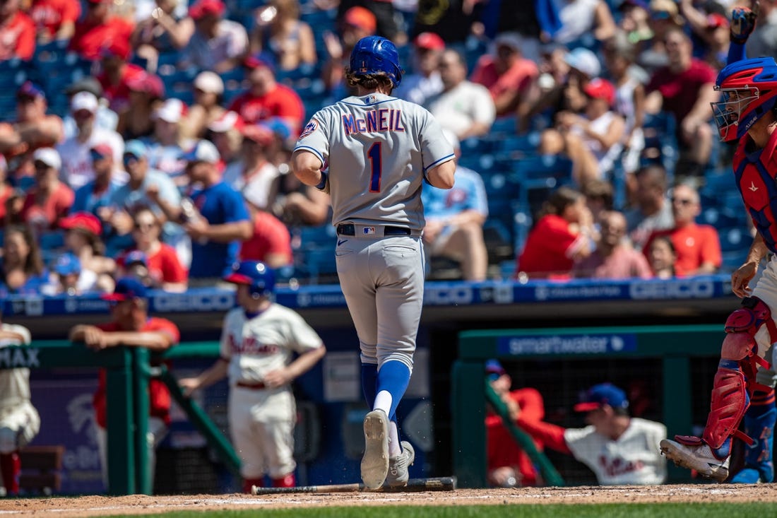 Jeff McNeil had three hits and two RBI, Michael Perez produced a clutch two-run single, and the New York Mets defeated the host Philadelphia Phillies 8-2 on Saturday in the first game of a day-night doubleheader.