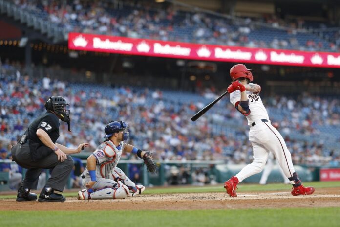 The Nationals moved in front in the fourth. Senzel singled with one out and went to third on Winker’s single. Ildemaro Vargas grounded into an apparent double play, but Washington challenged, and the call at first base was overturned with Senzel scoring the tying run. Gallo followed with a homer, and the Nationals led 4-3.