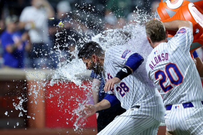 J.D. Martinez hit a walk-off, two-run homer Thursday night for the Mets, who were no-hit into the sixth inning before coming back to edge the Miami Marlins 3-2 in the decisive game of a three-game series in New York.