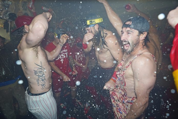 Philadelphia Phillies (93-64). Clinched the division title with a 6-2 win over the visiting Chicago Cubs on Monday in the opener of a three-game series. Would clinch a first-round bye with two more wins this week.