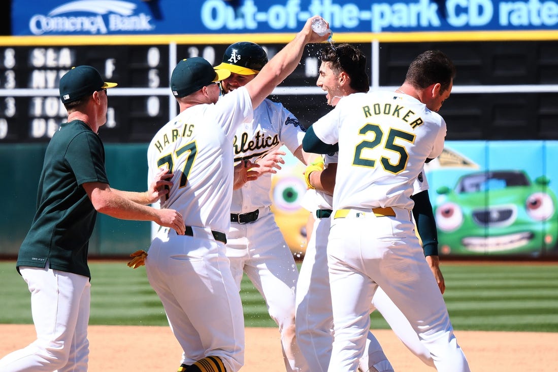 Pinch hitter Tyler Soderstrom drew a four-pitch, walk-off walk from Colorado Rockies reliever Peter Lambert to cap a five-run uprising in the 11th inning as the host Oakland Athletics rallied for a 10-9 victory on Thursday afternoon.