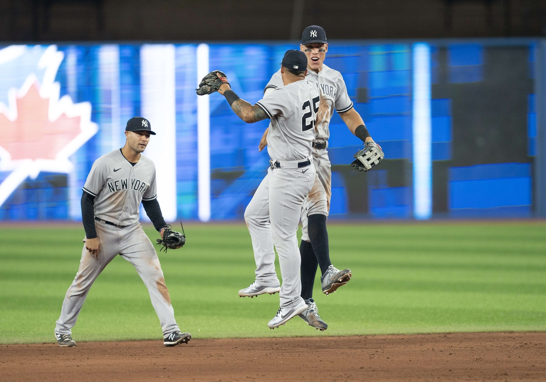 Giancarlo Stanton opened the ninth with a single to center off Yimi Garcia (0-2), and pinch runner Tim Locastro stole second. After Garcia retired former Blue Jays player Josh Donaldson and fanned Aaron Hicks, Torres gave the Yankees a 3-2 lead by lining a first-pitch curveball to center field to easily score Locastro.