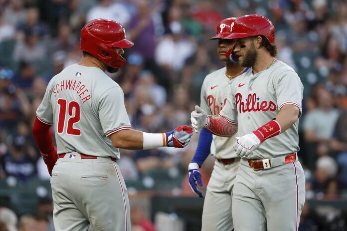 Harper extended his hitting streak to nine games and his extra-base hitting streak to five games. He had a three-run homer and two doubles on Monday. Philadelphia’s Alec Bohm supplied four hits, including a homer and a double, and drove in three runs.