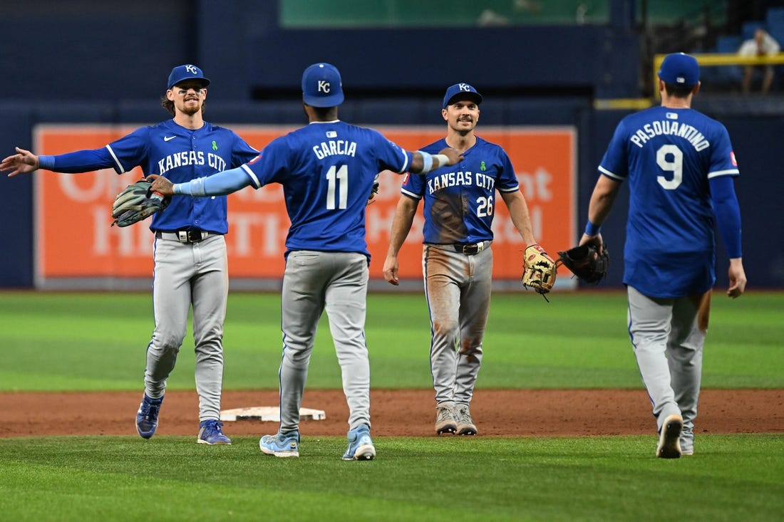 In the top of the 11th, Velazquez plated automatic runner Freddy Fermin with a double to center, then scored on Adam Frazier’s infield single. Maikel Garcia added on with an RBI single.