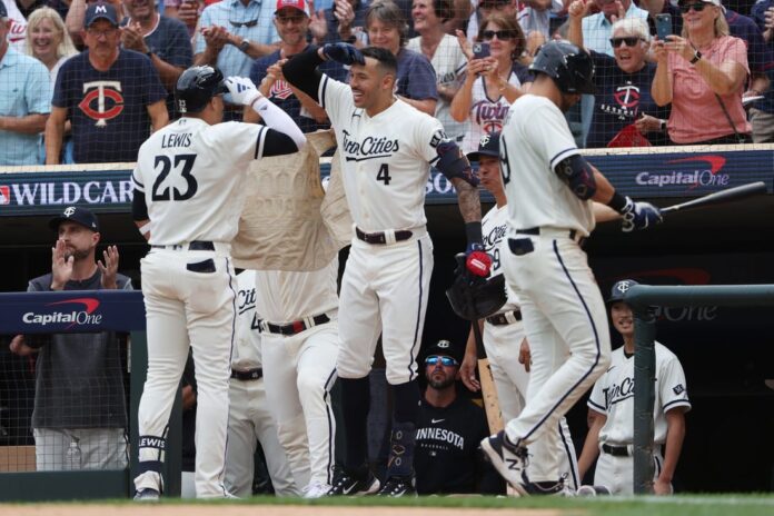 Royce Lewis homered in each of his first two career postseason at-bats and the Minnesota Twins ended an 18-game playoff losing streak with a 3-1 victory over the Toronto Blue Jays in Game 1 of their American League wild-card series in Minneapolis on Tuesday afternoon.