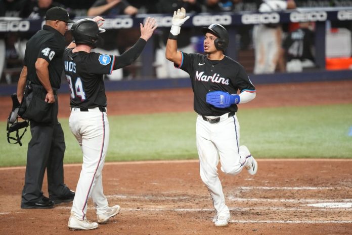 Miami’s Edward Cabrera, who made his 2025 MLB debut, left with the lead but got a no-decision. In 5 2/3 innings, Cabrera allowed four hits, three walks and two runs after missing the start of the season due to a finger blister.