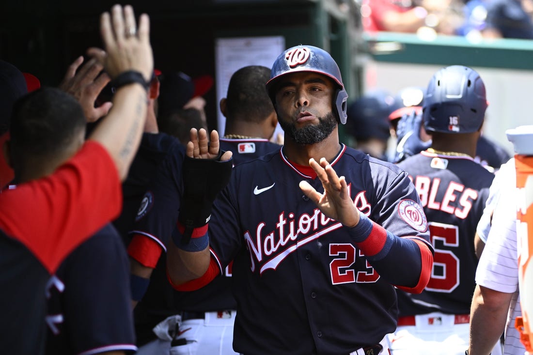 Robles restored the four-run lead with a three-run homer in the bottom of the fourth, his first of the season, and Adams hit a two-run homer in the eighth.