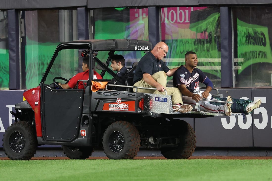 He was injured when his leg slammed into the wall in right field while he was trying to rob DJ LeMahieu’s homer.