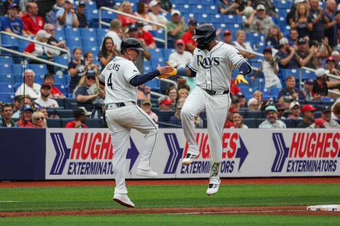 Caminero’s home run leading off the bottom of the third made it 4-0. He drove a 1-1 pitch to the opposite field, into the right-center-field stands an estimated 404 feet for Caminero’s sixth homer.
